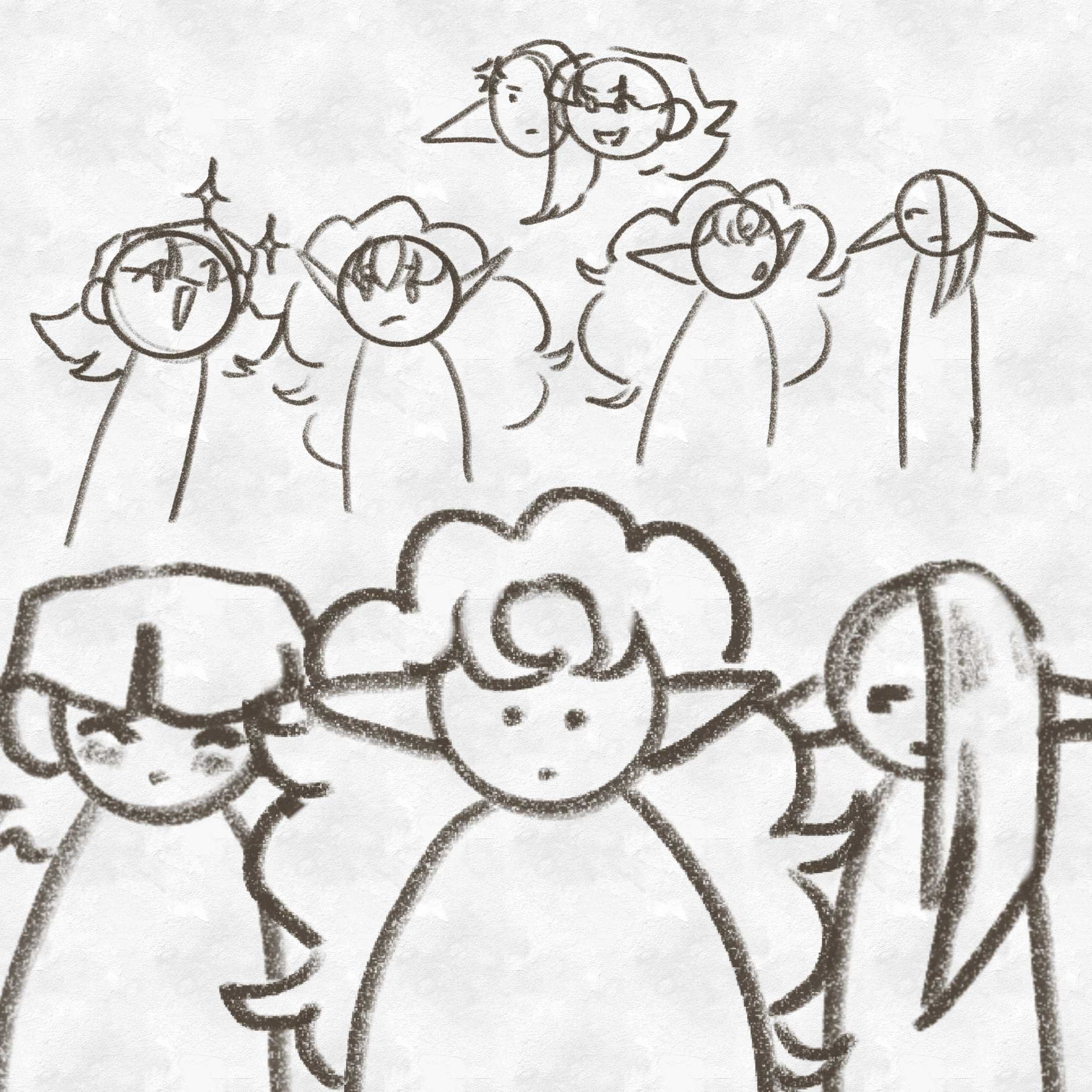 When coming up with characters, begin by considering certain character tropes you enjoy or personality traits you find interesting. The characters you feature in your story can be a great tool to explore the story, or rather the story can be good to explore the characters. Imagine the moments characters will have on their own and with others.